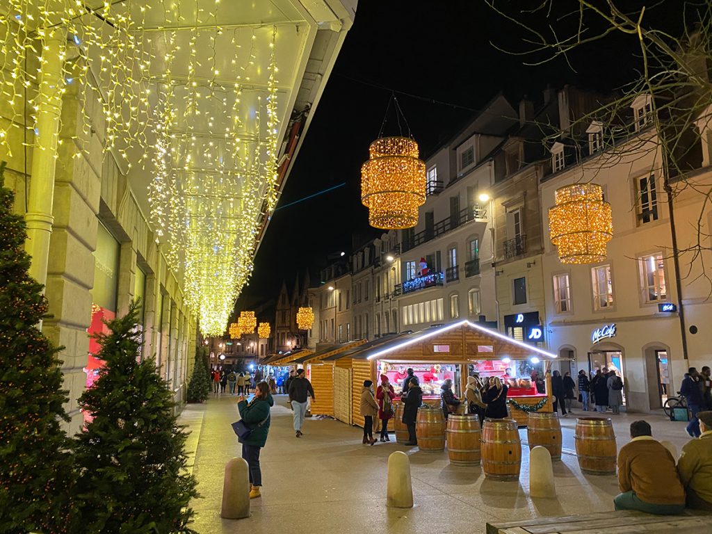 Marché de Noël dijonnais Le marché de Noël à Dijon était beaucoup plus simple que les années passées (inflation budgétaire, commerce local et écologie obligent) mais toujours aussi féérique.